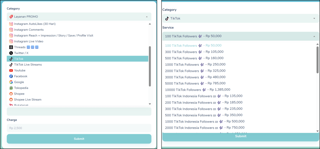 Setelah memastikan semua detail pesanan benar, klik “Submit”. Pesanan jasa followers TikTok Anda secara otomatis akan masuk dalam antrian untuk diproses.